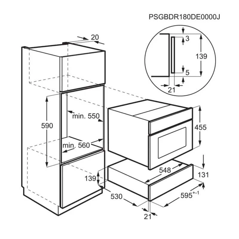 - Dimensions: H 140 x W 595 x D 535mm