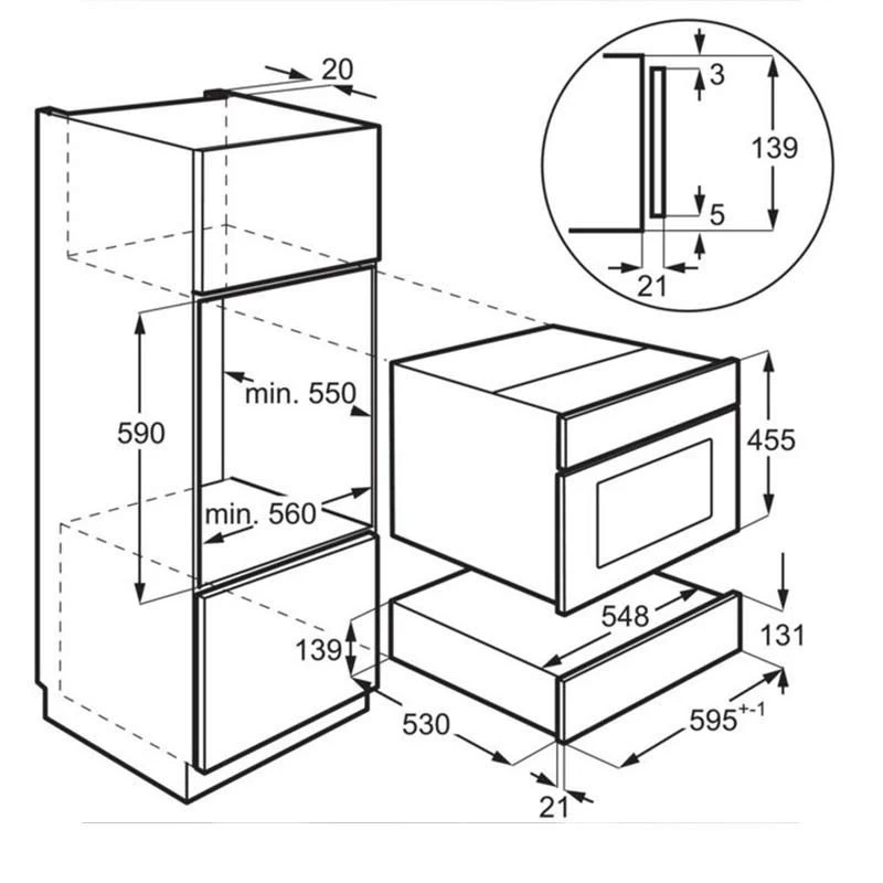 - Dimensions: H 140 x W 595 x D 535mm
