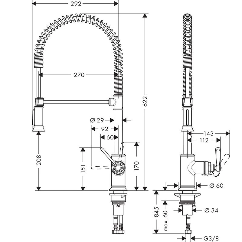 Practical, stylish and easy to install, this Axor Single Lever Kitchen Mixer is perfect to give your kitchen a traditional revamp. Designed to effortlessly coordinate with other kitchen fittings from Axor.