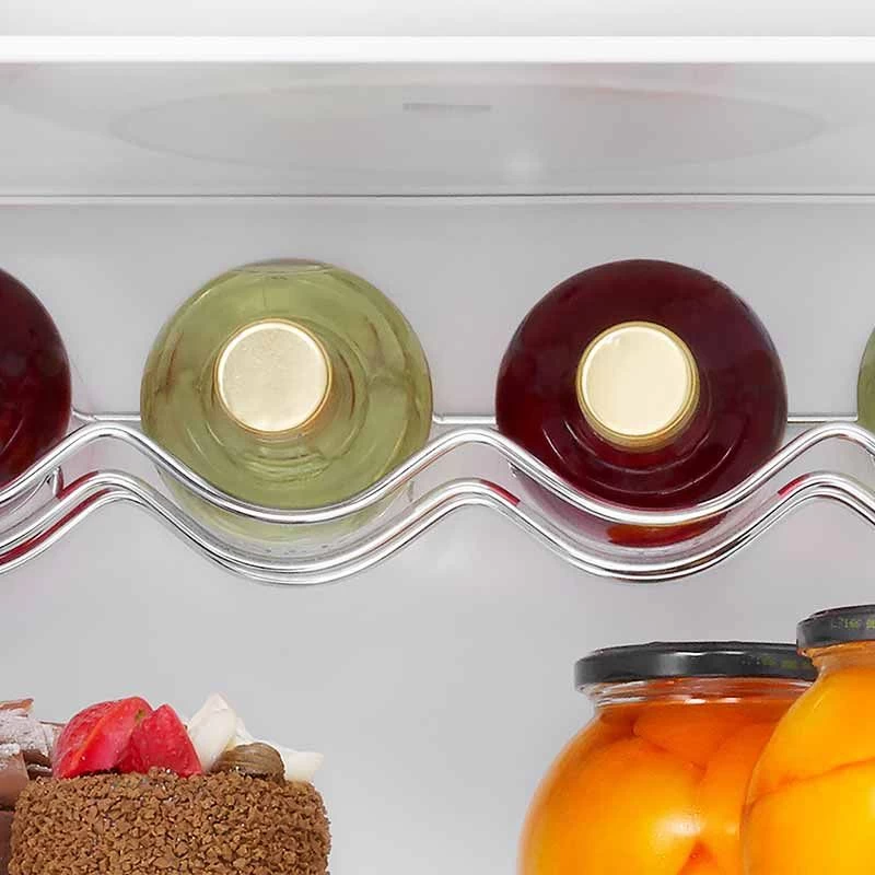 Chrome Wire Wine Rack – Enjoy a convenient storage space for your bottles thanks to the chrome wire wine rack in our fridges. It can store up to five two-litre soft drinks bottles or wine bottles, so you’ll have extra space on your fridge shelves to store more of your groceries.