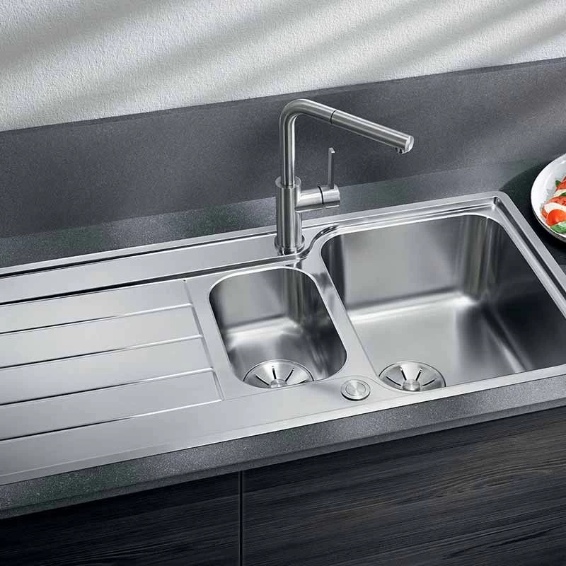 The Blanco Classimo 6 S-IF Reversible Stainless Steel Kitchen Sink & waste 524227 has high-quality features with the covered C-overflow and elegantly integrated InFino strainer with flat and intuitive PushControl remote control. A modern interpretation of classic design features for your bathroom aesthetic.