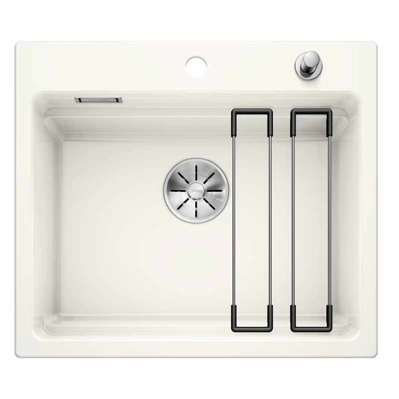 Blanco ETAGON 6 Ceramic PuraPlus 1 Bowl Inset Kitchen Sink with Drain Remote Control – Crystal White – 525156