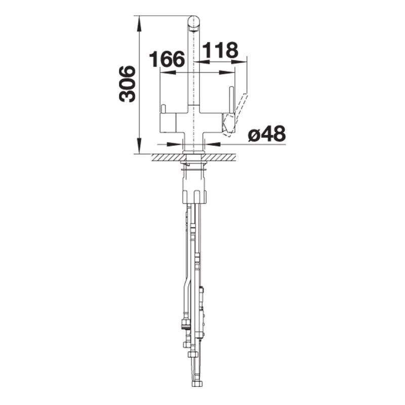 The Blanco FONTAS-S II Filter Kitchen Mixer Tap has a separate water circuit: cold and warm water lever on the right, filtered water lever on the left. There is an extra spout for filtered water – no mixture with mains water. It is space-saving and practical: with the 3-in-1-tap no additional drilling is required for filtered water supply.