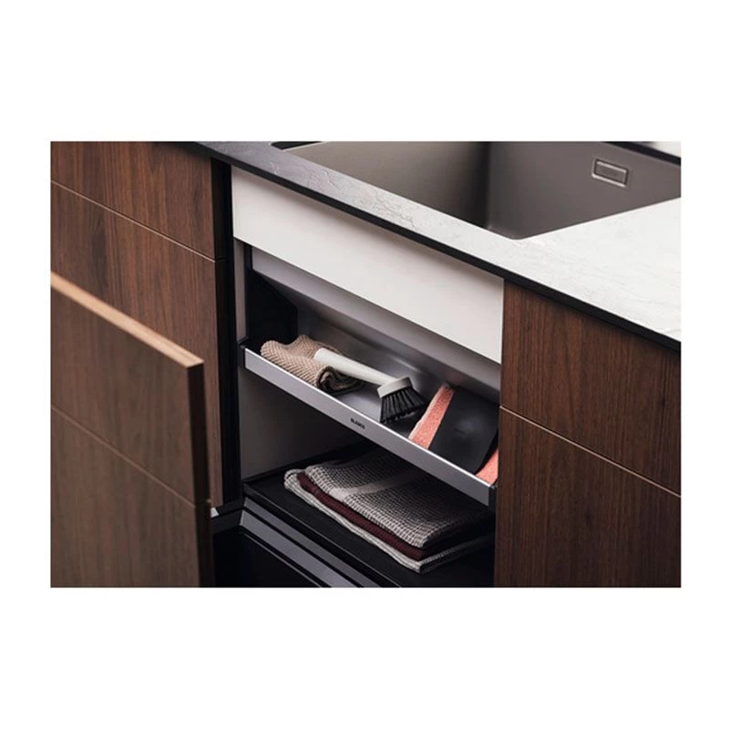 The Blanco ORGA Shelf 60P is suitable for 60cm wide cabinets with pull-out doors without hinges. The installation height can be positioned flexibly, provided that it is not restricted by the mounting bracket behind the traverse. This product is the perfect addition to your kitchen to help organise your sink cabinet.