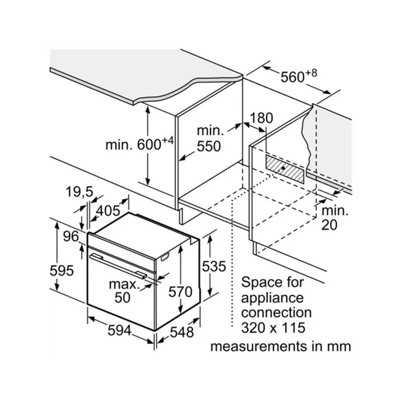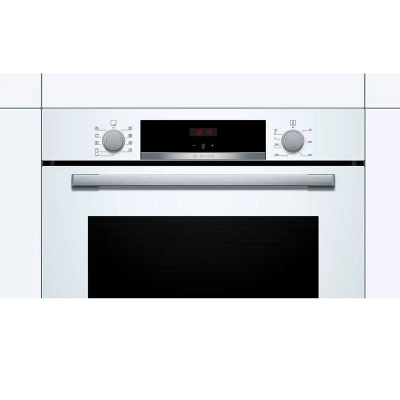 Finish your kitchen with the Bosch Series 4 electric oven. Designed for built-in installation in the kitchen counters. This oven features 7 cooking methods including gentle hotair and full width grill. It has a fresh white design, perfect to be installed in any kitchen style.