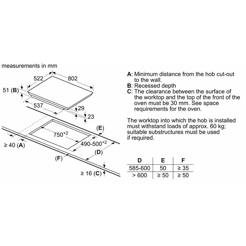 - Dimensions: H 51 x W 802 x D 522mm