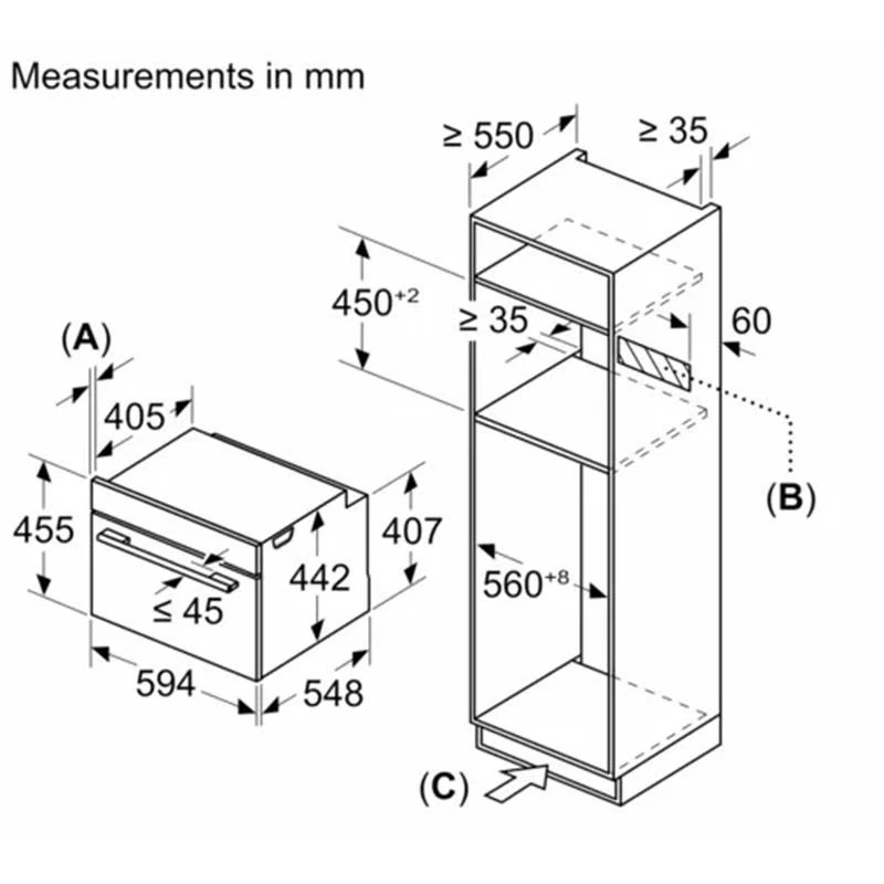 Bring a touch of style to your dinner times with the addition of the Bosch Series 8 Compact Oven & Microwave, offering brilliant cooking options and clever technology whilst looking amazing. Designed for Built In installation, the compact oven and microwave can be placed flush in between the counters or below the hob, suited perfectly for a modern kitchen space with added technology features that help to satisfy your cooking needs.