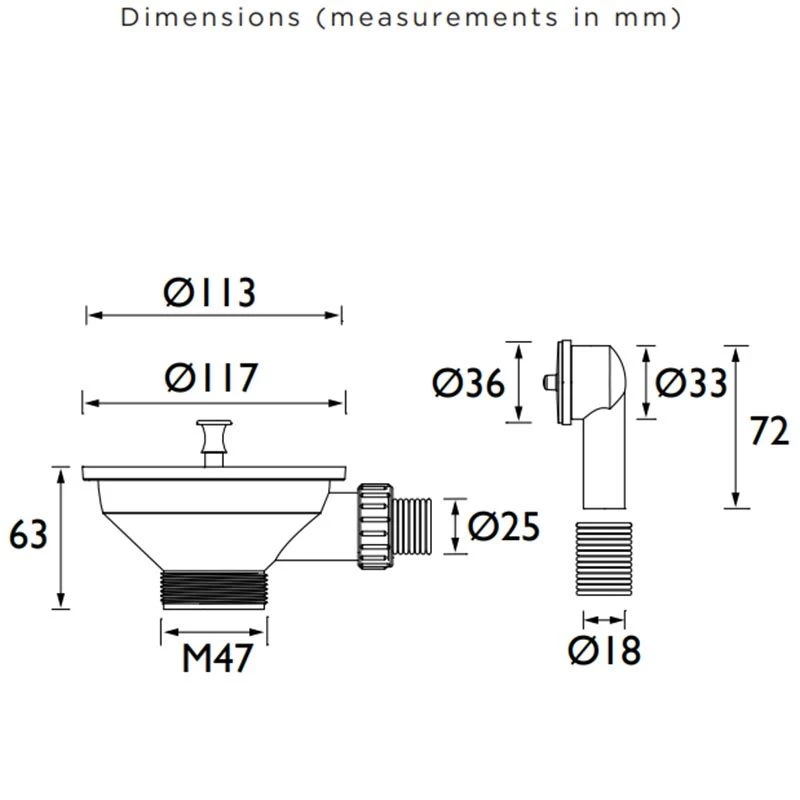 Bristan Economy Basket Strainer Sink Waste with Overflow – Chrome – W SNK4 C