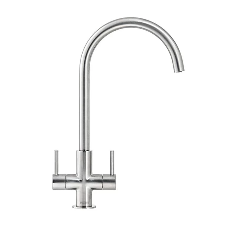 The Franke Hestia J spout kitchen tap boasts a classic design featuring an easily identifiable twin lever handles to operate hot and cold flow. It is also fitted with hard-wearing ceramic discs and suitable for high-pressure water systems. Built to last, the mixer tap is backed by 5 years guarantee from manufacturer for a peace of mind.