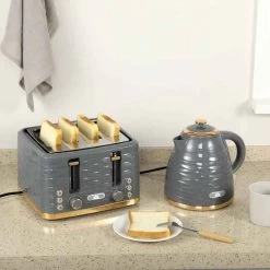 - 1.7L fast boil kettle and matching four-slice toaster. Stylish pebbled design