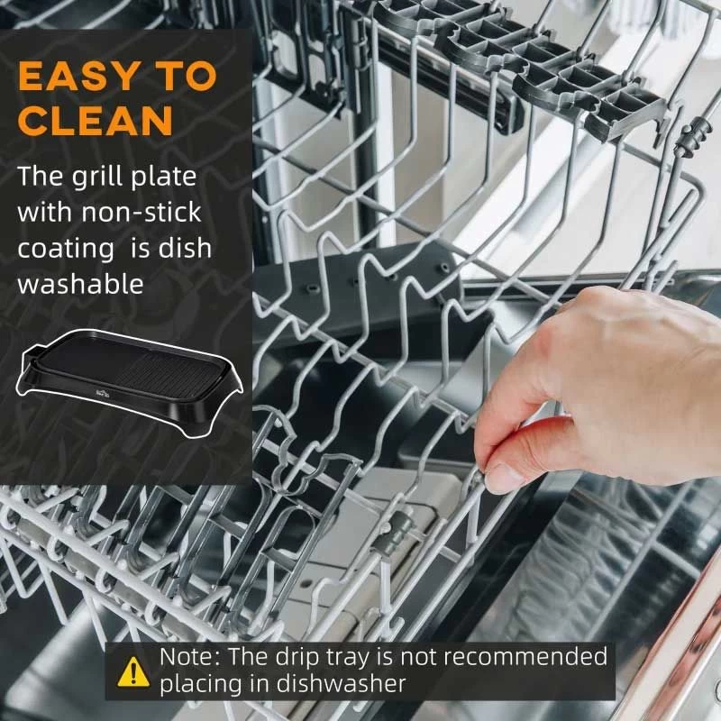 The HOMCOM Table Top Grill has been made into a double-plate design, with half featuring a grill and the other half a flat plate, perfect for cooking lots of food at once to help save time.