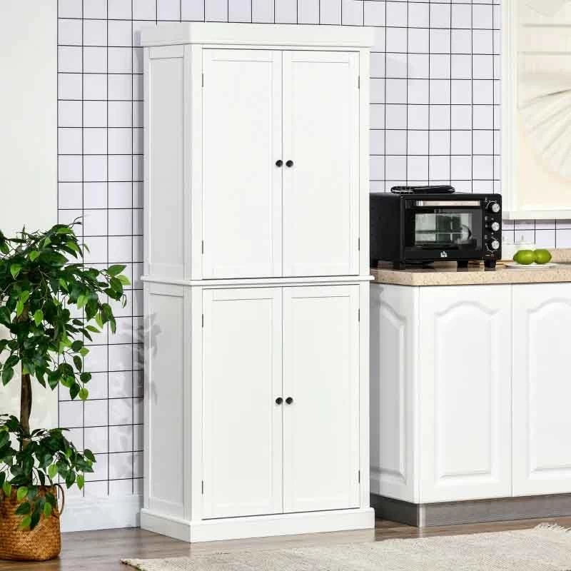 HOMCOM Freestanding Kitchen Cabinet with 4 Doors – White – 835-118V01WT