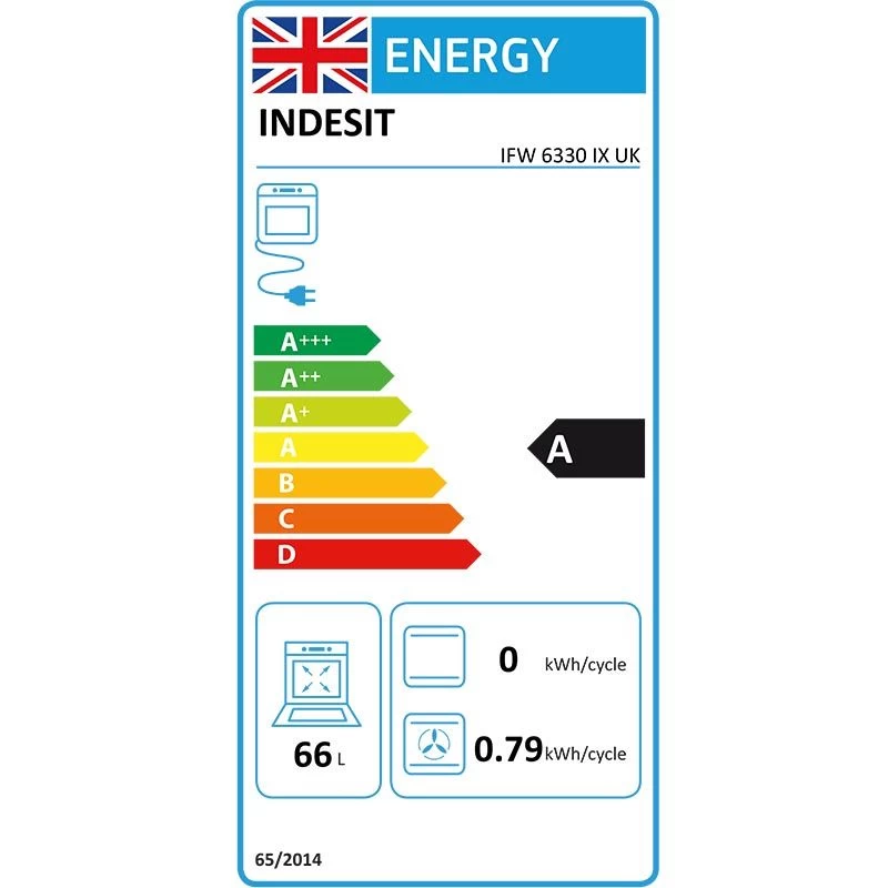 Finish your kitchen with the Indesit Aria IFW 6330 IX UK single electric oven. Designed for built-in installation in the kitchen counters, the oven has a generous 66L capacity that’s great for small and large households