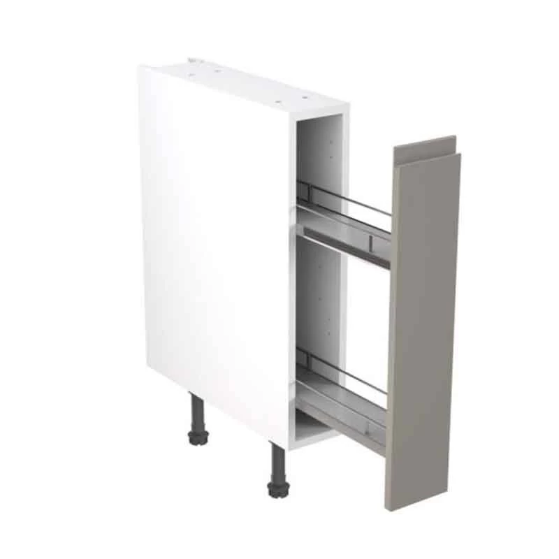 The Kitchen Kit J-Pull 150mm Pull Out Base Cabinet features a base units come with four adjustable legs, and there is a 49mm service void allowing plenty of space to conceal pipework and wiring. Kitchen Kit furniture includes the door, soft close hinges, and the cabinet making choosing the right furniture very straight forward. This product also comes with a 6 year manufacturers guarantee for your peace of mind.