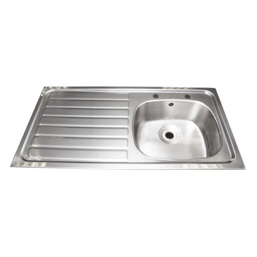 A single bowl/single drainer inset sink manufactured from 0.91 mm thick, austenitic type 304 stainless steel, satin polish finish. This sink has all four sides incorporating a rimmed edge profile, suitable for insetting into a standard sized worktop. The bowl is prepared for a 38 mm waste. Supplied complete with fixing clip