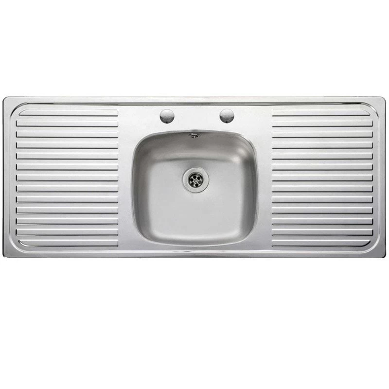 The Linear LR116052/NC is a sit-on, one bowl, two tap hole stainless steel kitchen sink with two draining boards, one on either side of the bowl. The LR116052/NC is made from high quality 0.7 gauge stainless steel.
