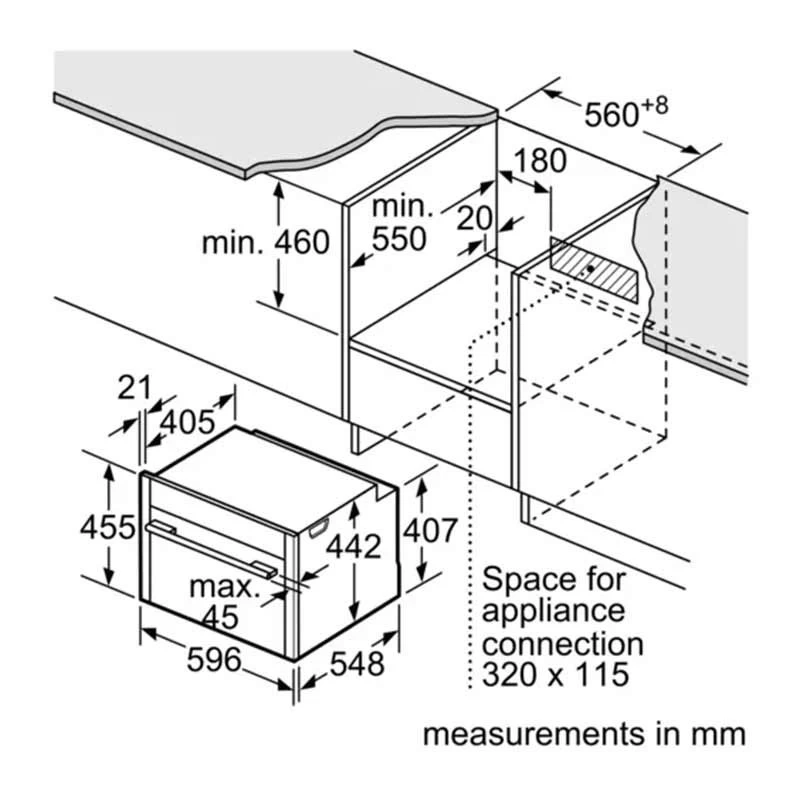 The oven features a touch control and a display that are easy to use with a sleek look. It has a capacity of 45 litres and is equipped with CircoTherm and ShiftControl technology. The enamel liner cleaning system makes keeping the oven clean much easier. The interior is made from a grease-proof enamel material so that splatters and crumbles will all soften with heat and soapy water, enabling you to wipe them off with no effort.