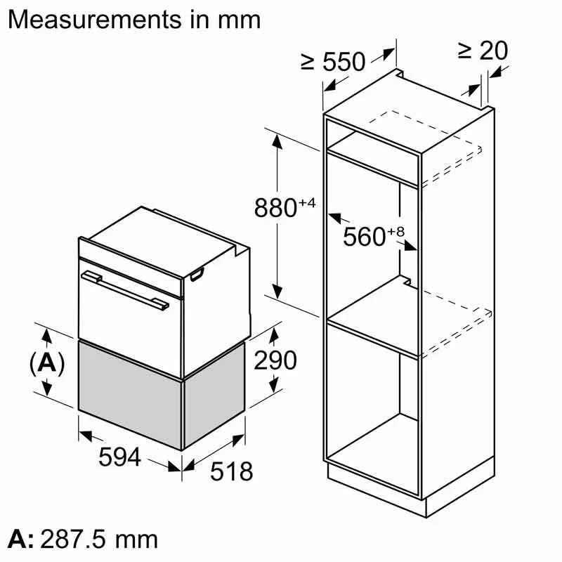 - Dimensions: H 290 x W 594 x D 518mm