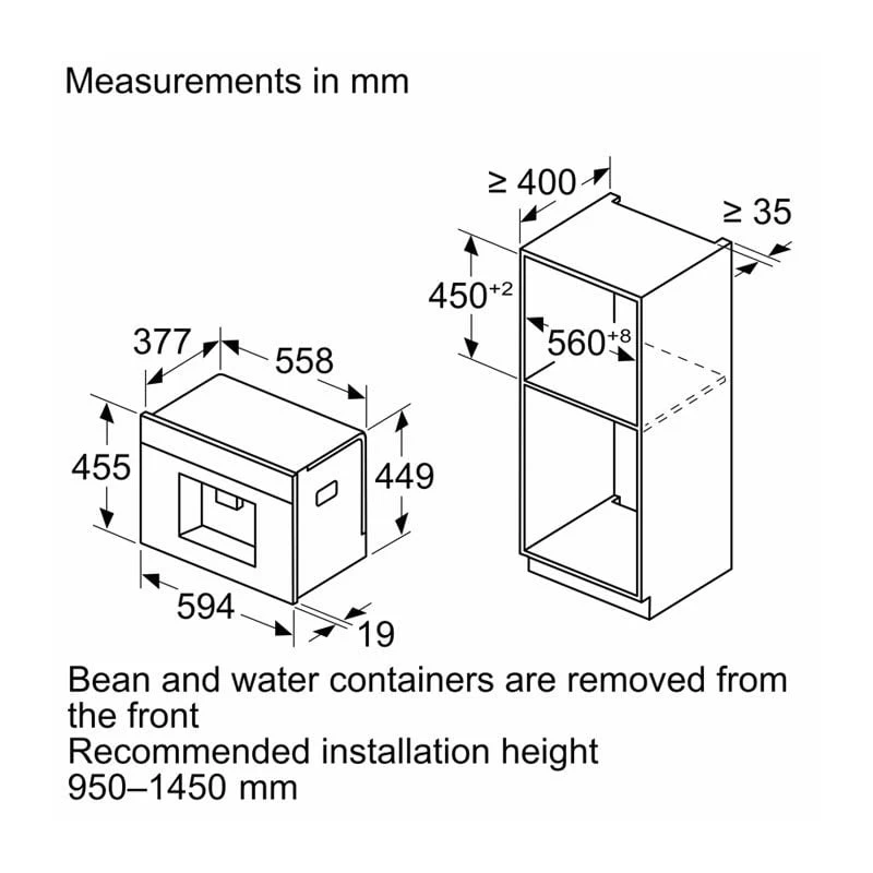 The Neff N90 CL4TT11G0 2.4L Built In Coffee Machine is a high-quality, fully automatic coffee machine that is part of Neff’s exclusive N90 collection. It is manufactured from high-quality materials and features a modern black with graphite grey trim finish. The Neff N90 CL4TT11G0 has a 2.4L water tank and a 500g bean container, so you can make plenty of coffee at once. It also has a hot water spout, so you can use it to make tea or other hot drinks.