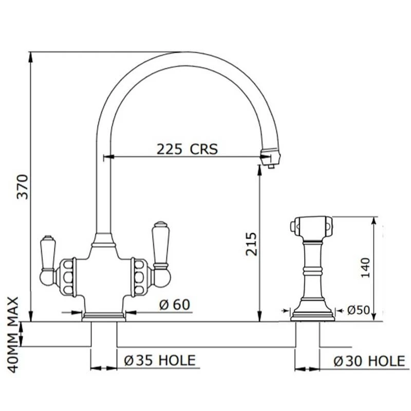 - Spout Reach – 225mm