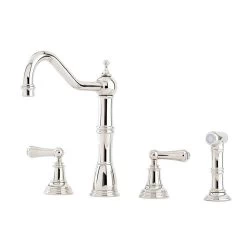 The Perrin & Rowe Alsace kitchen mixer is the perfect item to finish your kitchen sink. The mixer features a curvaceous spout and detailed design work – an elegant addition to country or traditional-style kitchens. It is manufactured from the highest quality of low lead brass that is known for its durability.