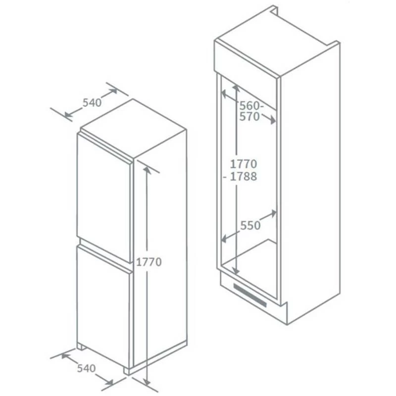 Finish your kitchen with the Prima fridge freezer. It includes 5 shelves and 6 drawers to store your foods and designed for built-in installation in between or the corner of the kitchen counters. It has a fresh white interior and exterior, perfect to be installed in any kitchen style. Ideal for large families, this fridge freezer provides a compact solution to all your freezing and refrigeration needs in one go. With a 147 litre fridge capacity and 77 litre freezer capacity, the fridge freezer adds easy storage and organization, ideal for storing your fresh and frozen food at a high standard.