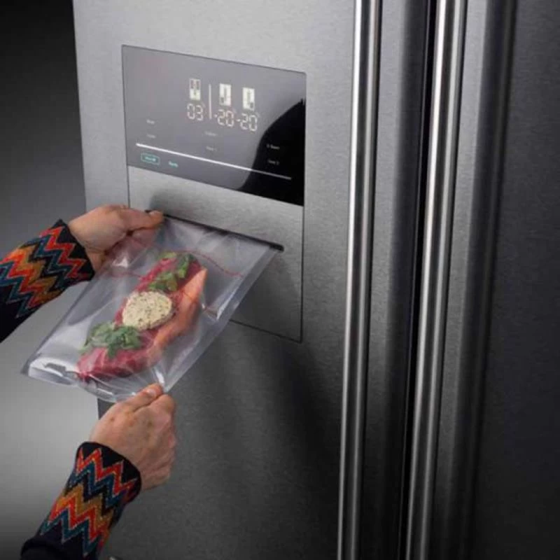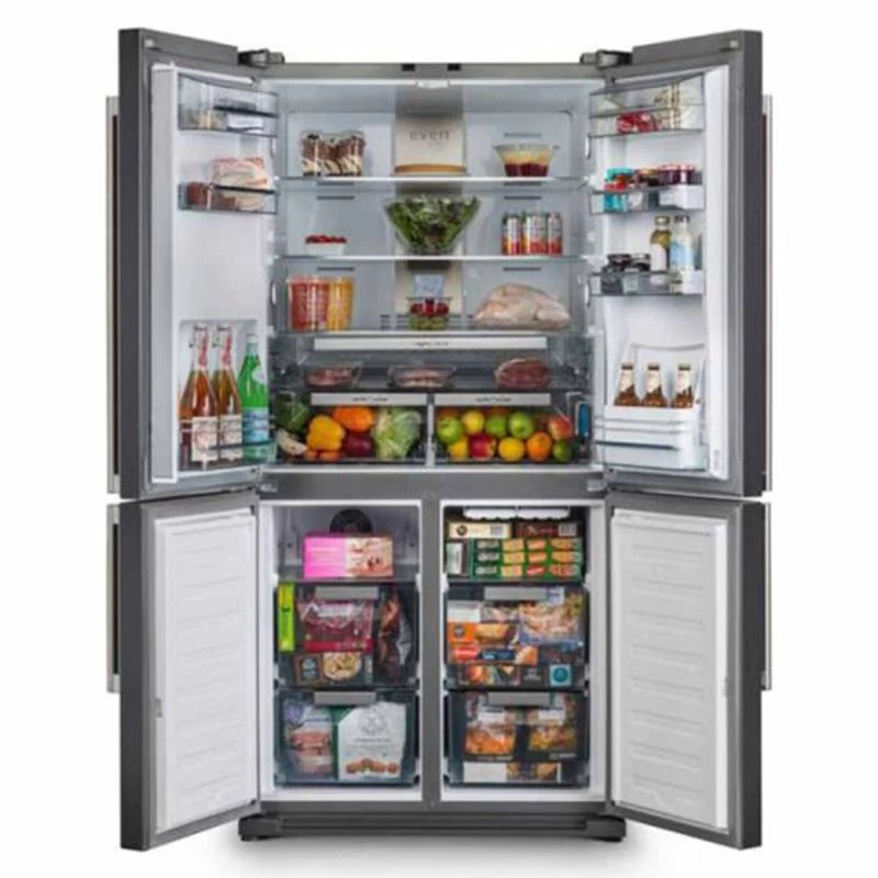 The Rangemaster SXS Deluxe is an American style Fridge Freezer packed with a range of features to suit the modern-day home. Alongside its impressive over all compacity of 584 litres, it also features a child lock function to prevent any accidental changes being made to the fridge freezer. This fridge freezer also includes Ionizer technology. Ionizer spreads negative ions within the refrigerator neutralising unpleasant odour particles, keeping food fresher and improving air quality. With our busy lifestyles another benefit to the SXS Deluxe is the V-Seal technology. An innovative and highly practical method of food preservation using a vacuum-pack seal facility on the front facia for sealing-in food for storage or sous-vide cooking. Another handy feature is its frost-free technology which automatically defrosts the freezer meaning there is no need to spend precious time manually defrosting. There is also a door alarm which will ring if any of the doors are left open for longer than 2 minutes and this is to help prevent cool air escaping. Unique in its design this beautiful fridge freezer is available in a choice of colours and comes with a 2 year manufacturers guarantee.