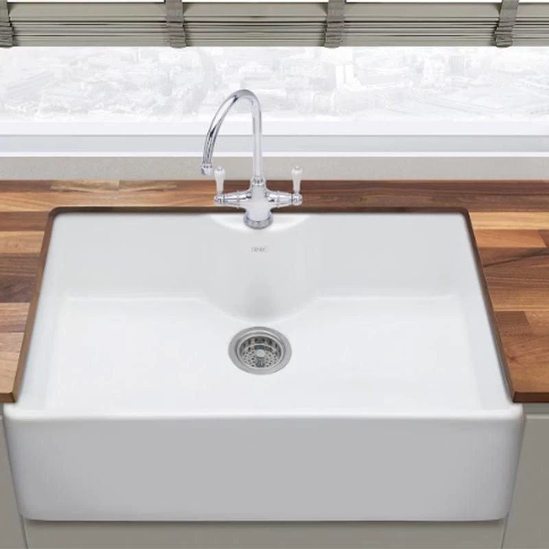 Thomas Denby Legacy 800mm Ceramic Kitchen Sink With Tap Ledge – White – Details