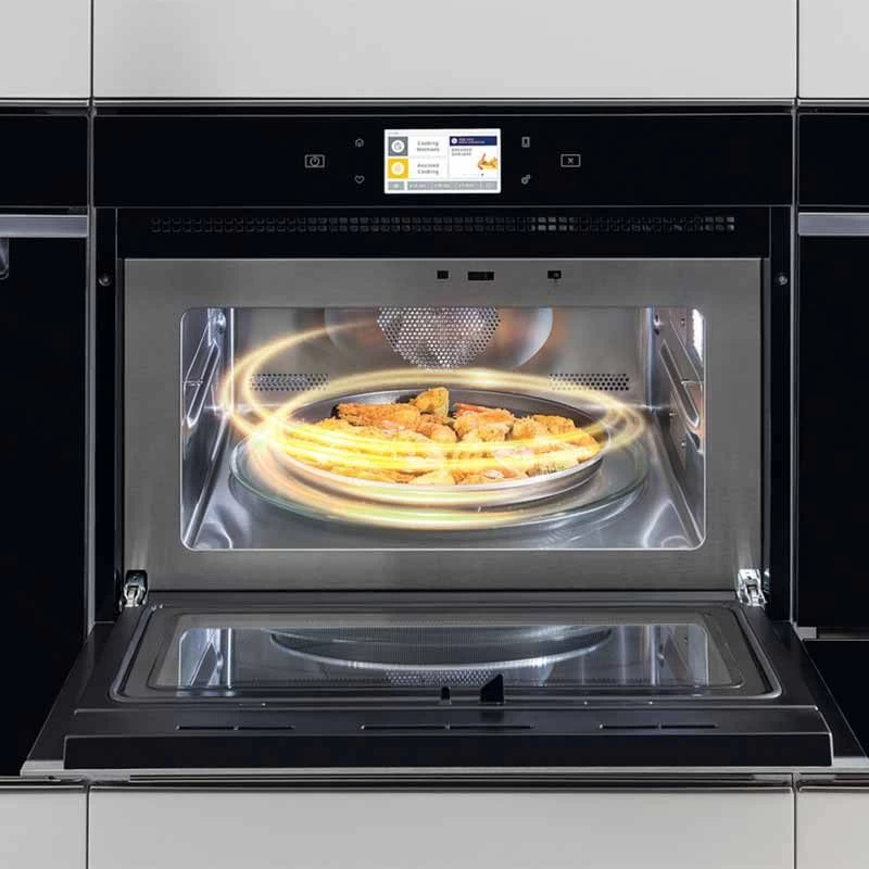 Achieving even results every time demands precisely controlled heat, distributed consistently throughout your microwave oven. This model is designed to fit in an eye level cabinet. Thanks to its 22 litre capacity, it’s an excellent choice for small sized households. The 900 watt power output means you’ll never need to wait long for your meals to cook. This microwave oven is wifi enabled and allows the user to download recipes to the oven with the 6th Sense Live app. Once downloaded you can prepare tailored dishes at the push of a button. With the 5in1 appliance you can choose from five different cooking methods: Crisp, CrispFry, Forced Air, Steam&Boil, Microwave. The 3D wave technology heats food from 3 different directions and the microwave also has a jet Start programme which gives a short burst of intense heat for 30 seconds. The dial touch controls also make it easy to control.