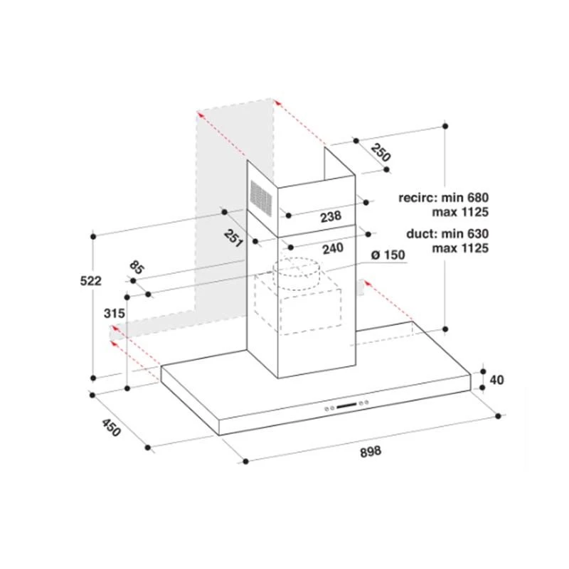 Whirlpool WHBS 93 F LE X 90cm Chimney Hood – St/Steel – Details